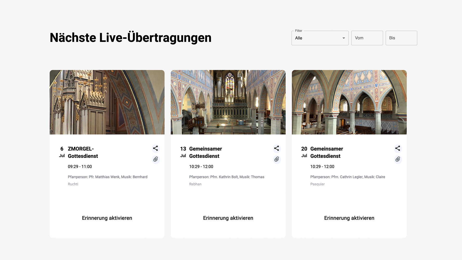 Um diese digitale Präsenz zu ermöglichen, wurde in Zusammenarbeit mit Gallus Media eine moderne, einfach zu bedienende Streaminglösung umgesetzt. Herzstück ist die Hybrid-Event-Plattform und die Website www.ref-sg-live.ch, über die sowohl spontane als auch regelmässig geplante Übertragungen von Gottesdiensten, Andachten oder kulturellen Veranstaltungen live übertragen werden und dauerhaft in der Mediathek der Website abrufbar sind.